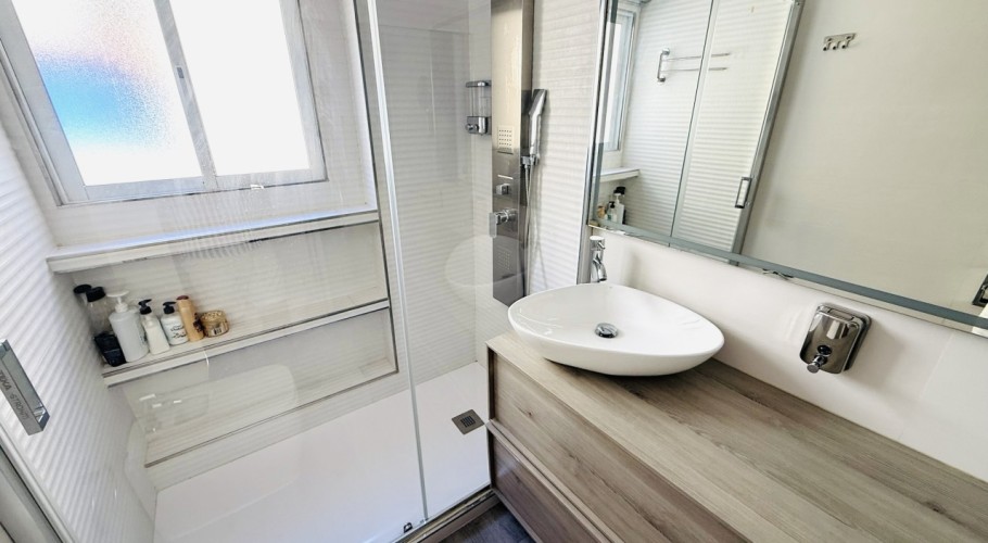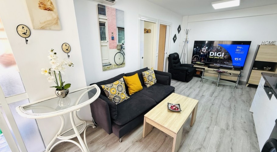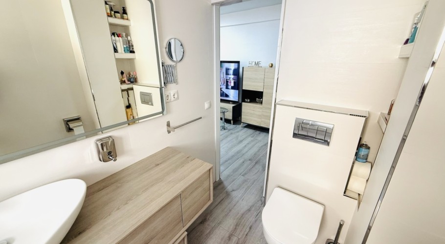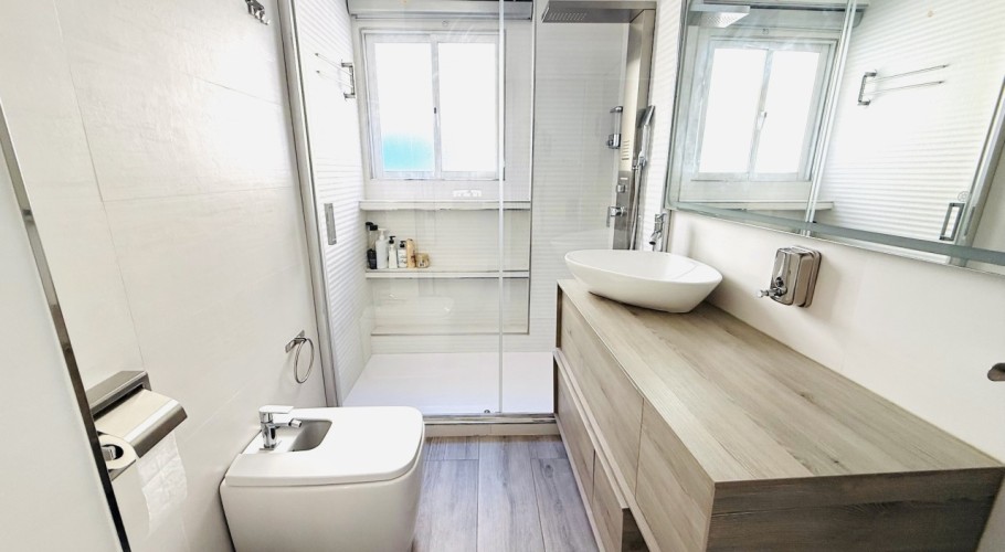• Acabados de calidad: suelos de tarima flotante, paredes alisadas, puertas correderas blancas.