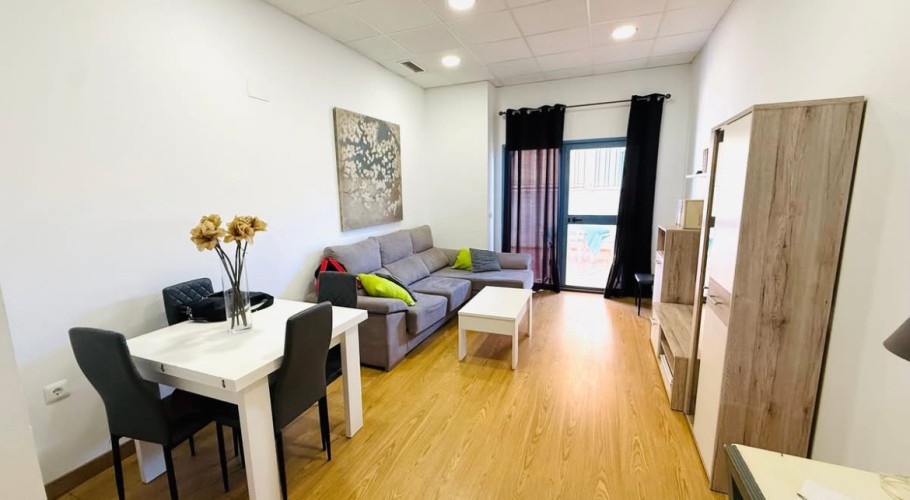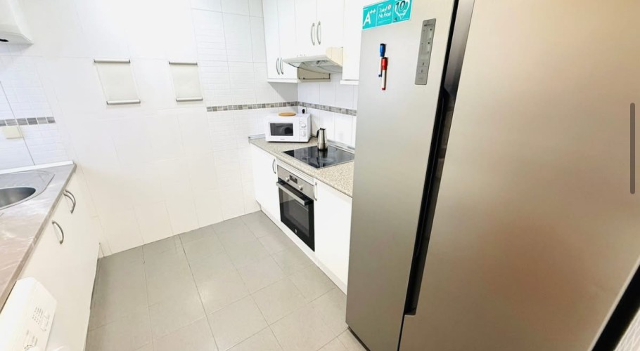 - Spacious 3-bedroom apartment located in a private development with a pool, gardens, and parking space. It features a living room with direct access to a large terrace, a separate kitchen, a full bathroom, and a toilet. In good condition and ready to move into.