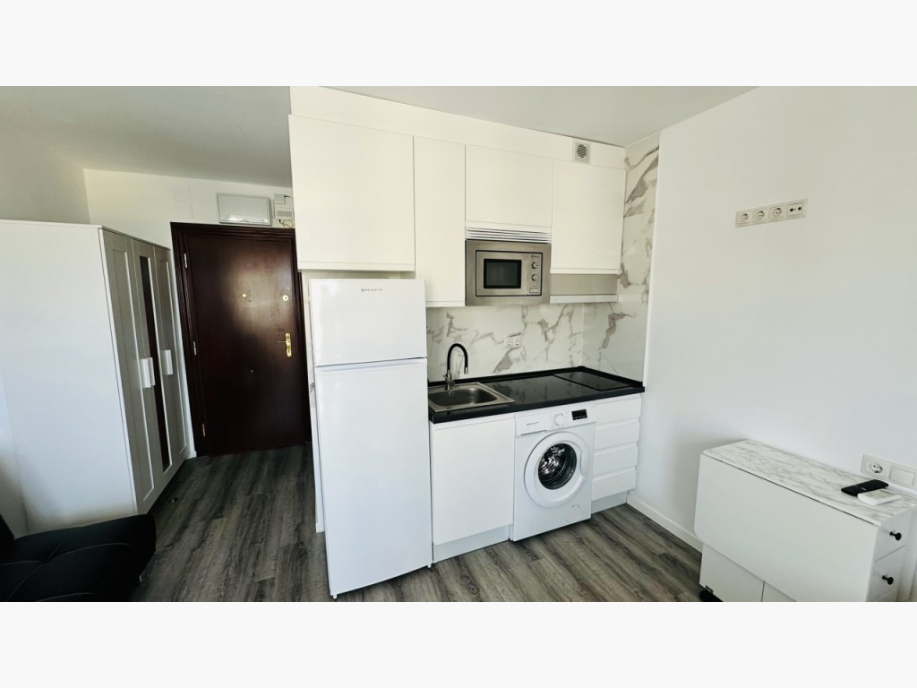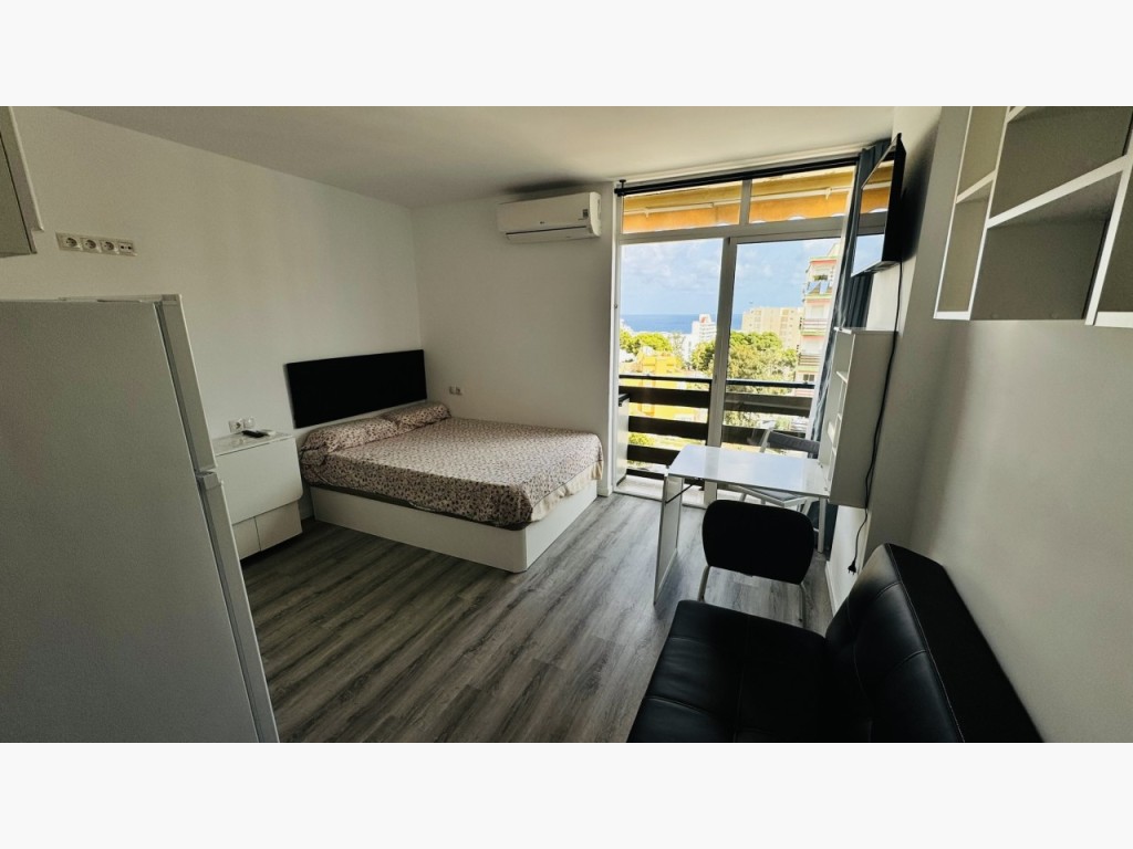 We present this modern and bright, fully renovated studio apartment, located within one of Benalmádena's most well-known and sought-after residential complexes, renowned for its excellent atmosphere, well-maintained gardens, and fantastic communal swimming pool.