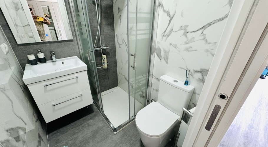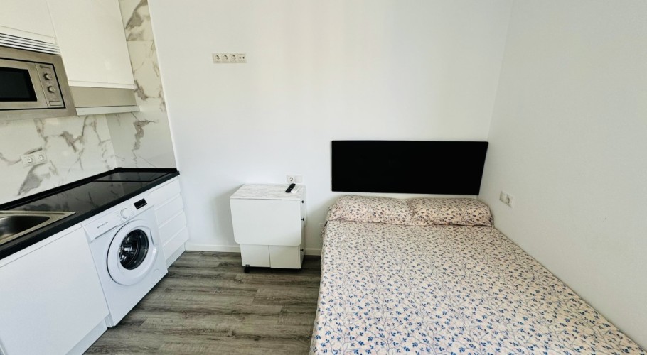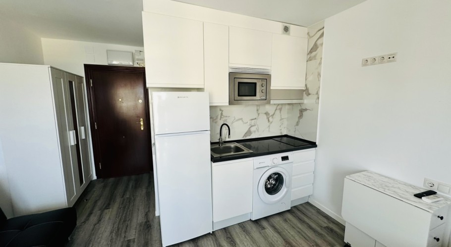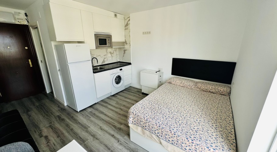 We present this modern and bright, fully renovated studio apartment, located within one of Benalmádena's most well-known and sought-after residential complexes, renowned for its excellent atmosphere, well-maintained gardens, and fantastic communal swimming pool.