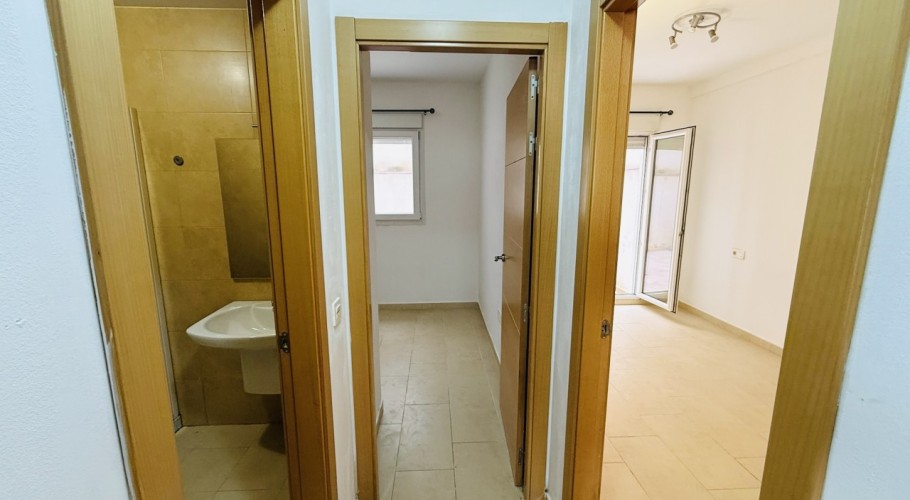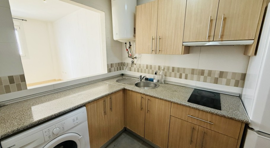 - Светлые апартаменты площадью 65 м² на первом этаже в аренду с собственным патио. В ней есть просторная гостиная, кухня открытой планировки с бытовой техникой, две спальни и ванная комната.