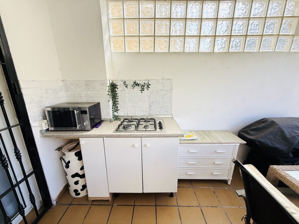 На террасе есть небольшая летняя кухня, идеально подходящая для отдыха в хорошую погоду.