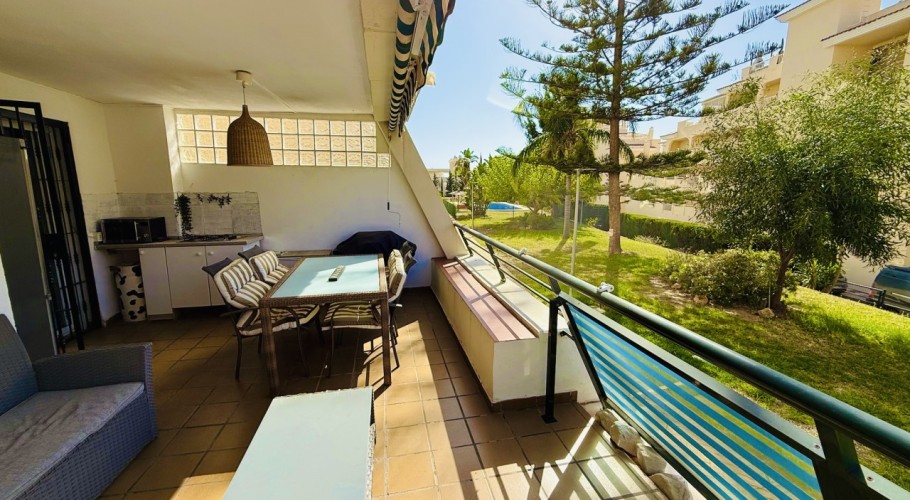 - Представляем вам просторный дом площадью 110 м² с двумя спальнями и двумя ванными комнатами или одной ванной комнатой и гардеробной на выбор. В доме есть полностью оборудованная отдельная кухня с выходом на патио и в прачечную, а также просторная гостиная с выходом на большую террасу с видом на зеленую зону. Мраморные полы.