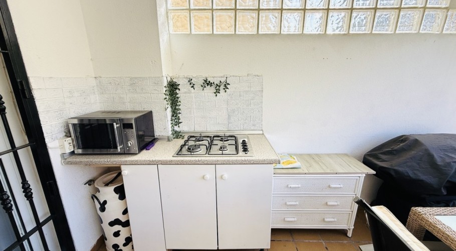 На террасе есть небольшая летняя кухня, идеально подходящая для отдыха в хорошую погоду.